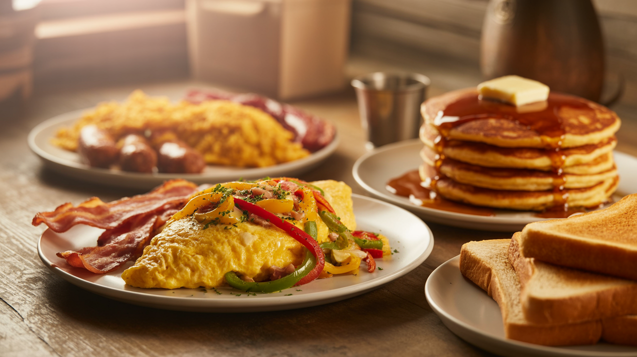 We serve classic American breakfast and lunch. Breakfast includes build-your-own omelettes, skillets, pancakes, waffles, biscuits & gravy, breakfast burritos, huevos rancheros, and chicken fried steak. Lunch features burgers, sandwiches, Philly cheesesteaks, salads, and Mexican favorites like chimichangas and enchiladas.